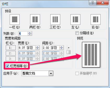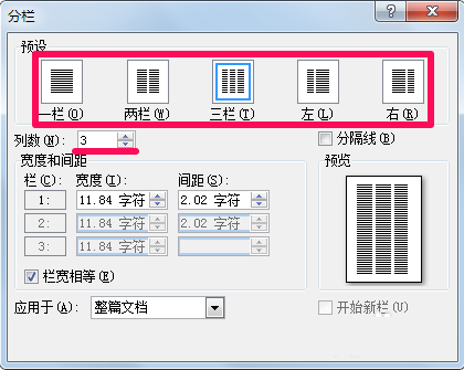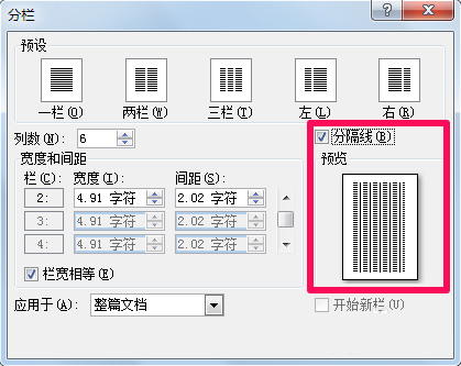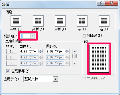 4、在列数中可以输入更多列,同时可以在预览中看到效果。