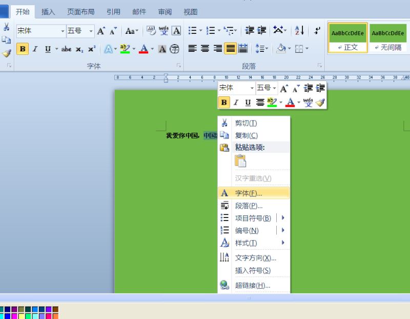 3、单击鼠标右键,选中字体选项