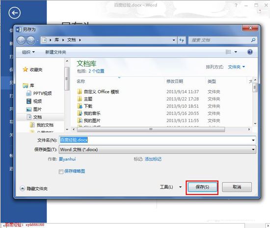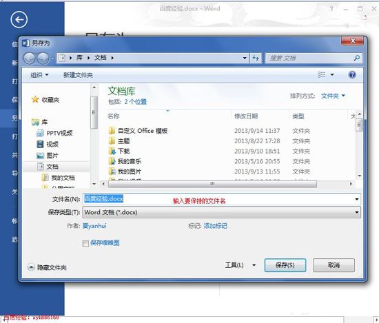 3、在打开的"另存为"对话框中,输入我们要不的文件名,保存类型默认就可以