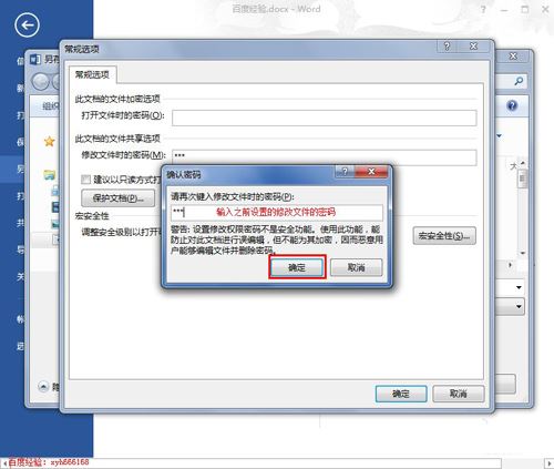 6、打开文件时的密码保持空白,在"修改文件时的密码"后面输入我们要设置的密码,然后点击下面的"确定"按钮