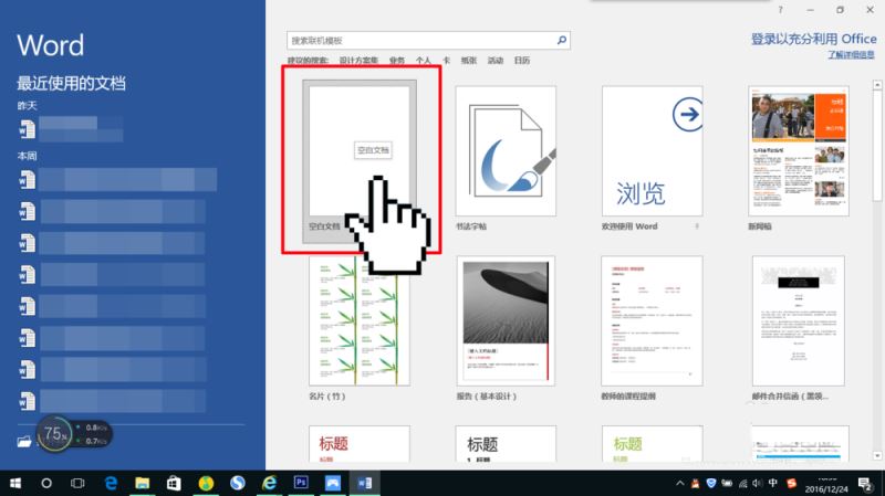 第一步当然是先打开Word 2016啦!