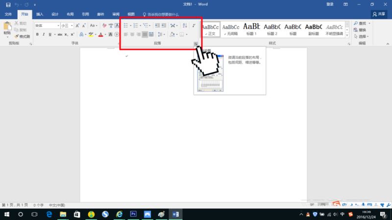 和步骤3类似,在如图指出的位置("段落"框的右下角)有一个小方框,点击它将弹出具体的编辑对话框。