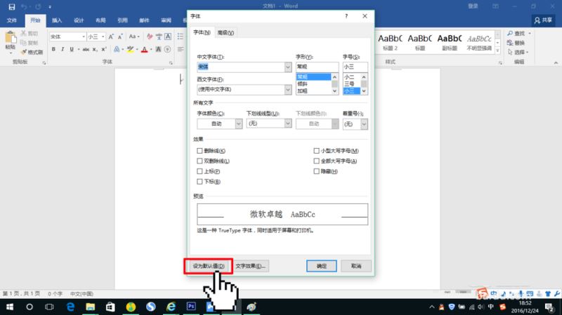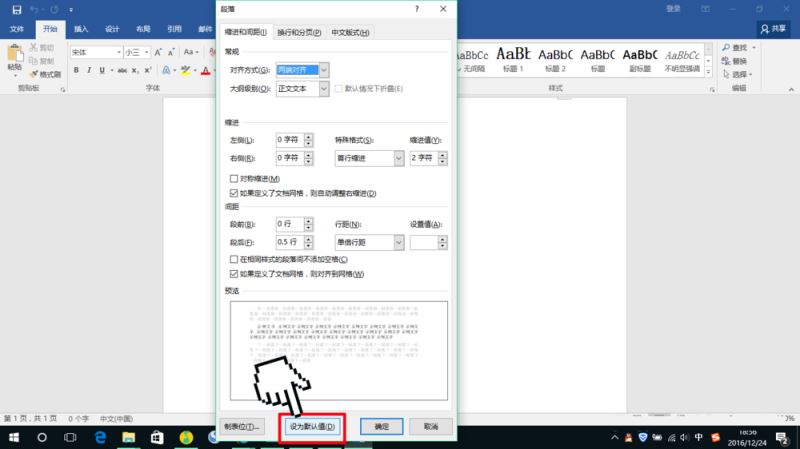设置Word 2016的默认字体默认段落格式的方法