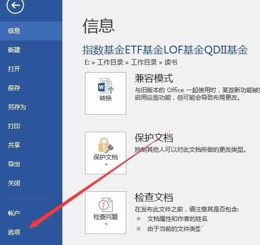 2、在打开的文件下拉菜单中点击"选项"菜单项