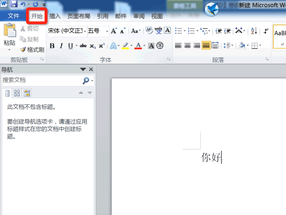 3、点击上面选项卡的"开始"