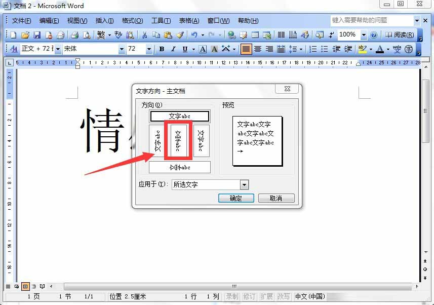 4、选中点击以后,出现了一个弹出窗口,可以选择几种文字方向,如图所示。