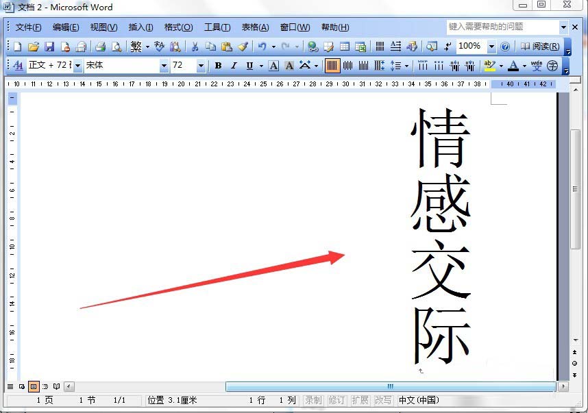 6、回到word的页面,我们发现,刚才横排的文字变成了竖排,如图所示。