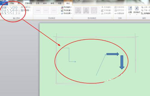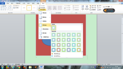 在左上角的工具中点击边框上的下拉列表即可调用各种word自带的图形,在中间位置的颜色花画板中我们可以对话好的图形进行上色。