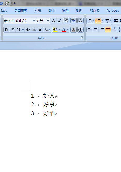 6、回车时候,产生的是一级编号,当您不想要一级编号时候,可以按一下tab键,就变成了二级,再按一次为3级,以此类推