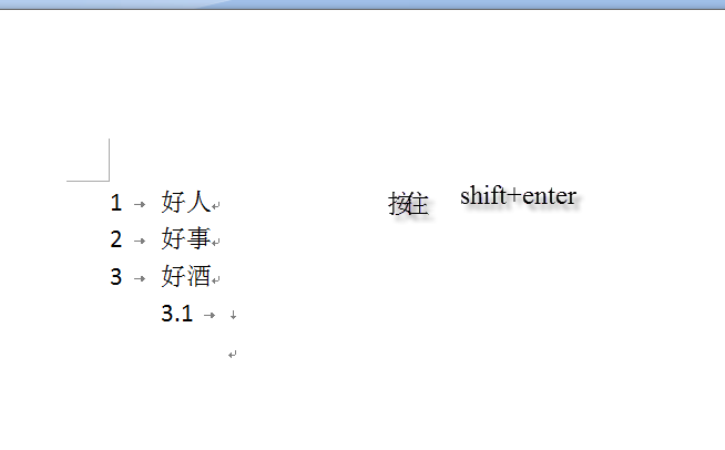 7、当您不想接下来的需要编号的时候,按住shift+enter即可,这样下一个就没有编号了