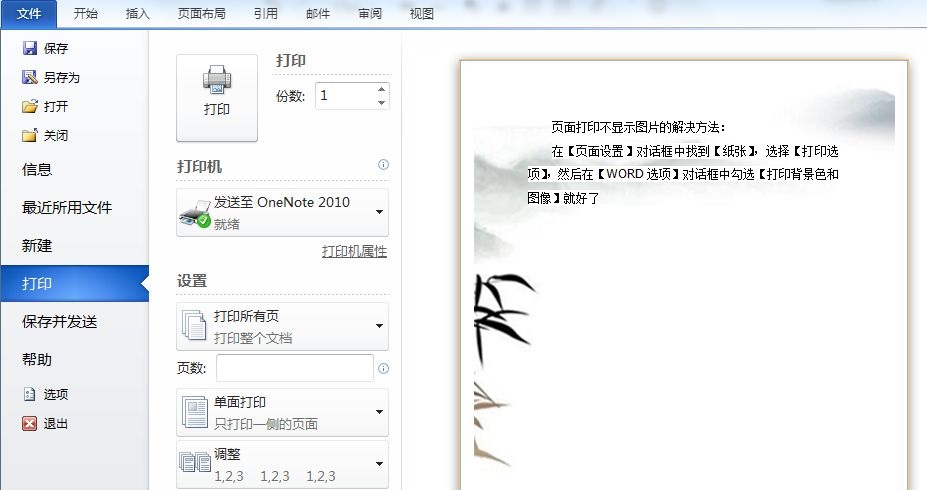 WORD页面差入背景图片,但打印出来却没有背景,怎么解决?