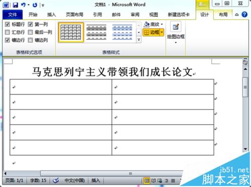 2、我们删除掉下面的文字 在插入选项卡的表格,插入一个2*5表格,如图