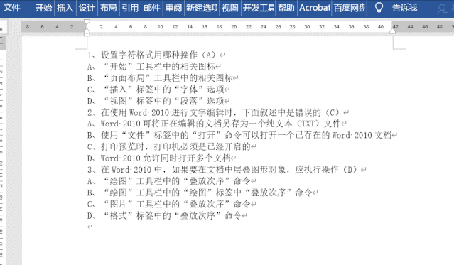 选中全文,按Ctrl+H打开查找和替换对话框,在查找中输入代码:[A-D])^13,在替换中输入:)^13,点击全部替换。