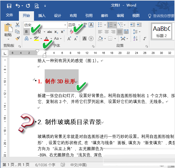 举例来说,下面的这篇文章中标题1和标题2都使用了"标题2"系统内置格式,采用三号、等线体、黑色字体。