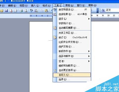 2、点击菜单栏上面的工具菜单,让后点击自定义选项