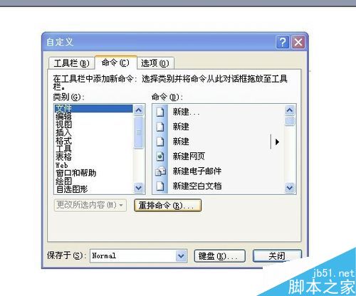 3、然后选择命令选项卡