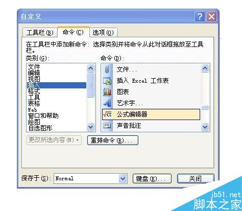 4、在左侧栏目中选择插入,在右侧栏目中选择公式编辑器。