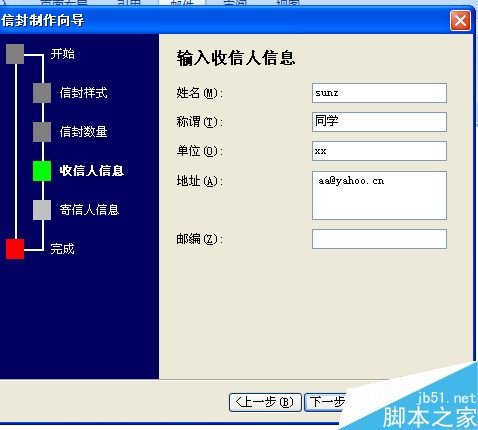 7、输入收信人的相关信息,如名字,邮寄地址,邮箱地址