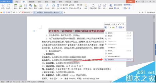 1、首先我们要打开我们的文档,然后我现在要在1.校内之间插入超链接,链接标题