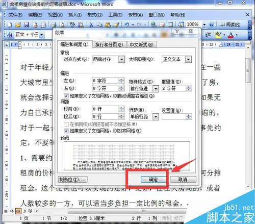 6、在特殊格式中选择首行缩进,并选择值为2个字符,选好后,我们点击右下角的"确定"按钮,如图所示。