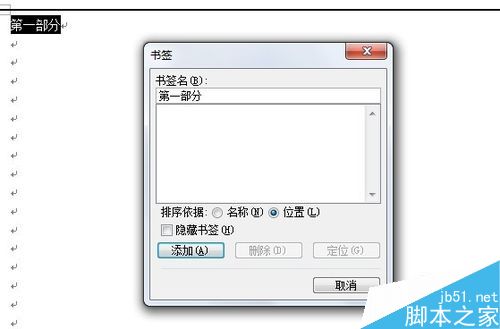 6、选择--在本文档中的位置--书签--第一部分--确定,此时,链接就生成了