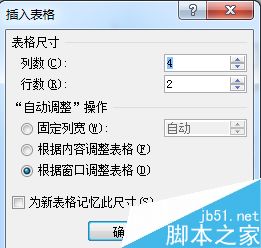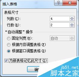 5、在插入表格窗口中,我们可以勾选"为新表格记忆此尺寸"我们就可以插入一个和上次一模一样的表格了,上图的最后一个表格就和其上的表格一模一样。