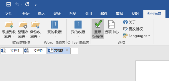 目前Office Tab支持的office组件有word、excel、ppt、project、visio、publisher和access,最高支持windows 10下的office 2016,安装完成之后,界面就是下面酱紫的