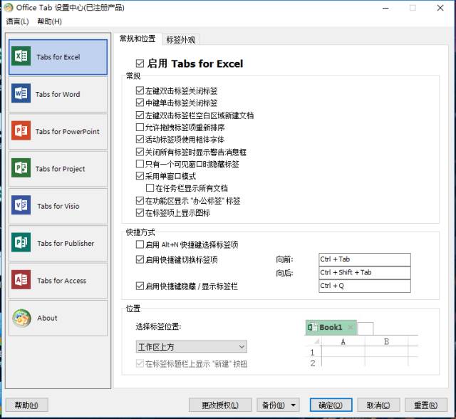 Office Tab 主要作用就是为 Microsoft Office 办公软件添加一个类似于 IE、Firefox 的多标签工具栏。方便我们在不同的文档(工作簿或者演示文稿)之间切换,提高我们使用 Microsoft Office 办公的效率。