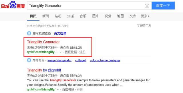 百度输入Trianglify Generator,点击第一个链接,进入一个英文的网站,莫慌,没有啥看不懂的,因为参数真的很少,操作也非常简单。