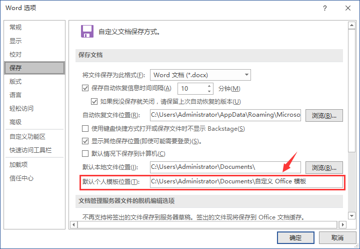 Word中可以通过两种途径来修改模板:第一种方法:基于该模板新建新的文档,对其格式进行修改,然后将其另存为新的模板并覆盖掉原有模板。第二种方法:打开模板文件,对其进行格式修改。首先,我们需要先找到模板的位置,点击【文件】-【选项】-【保存】,在“默认个人模板位置”处可以查看模板存放的位置。