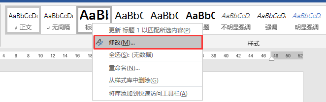 在使用模板创建了新的文档之后,若发现某个标题样式需要修改,并且希望原有的模板格式也进行相应的更改,该如何设置呢?在样式上单击右键,选择“修改”: