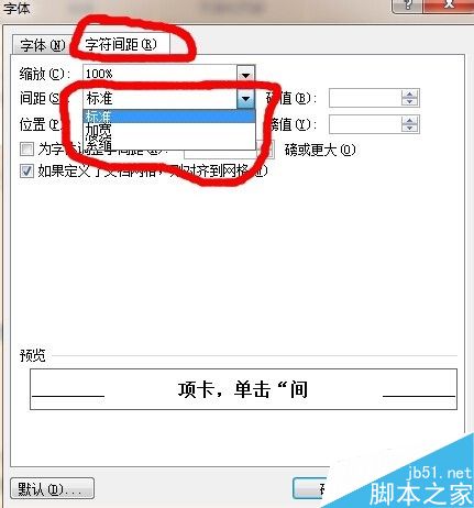3、切换到"字符间距"选项卡,单击"间距"右侧的下三角按钮,选择"加宽"或者"紧缩"根据自己的需要选择;