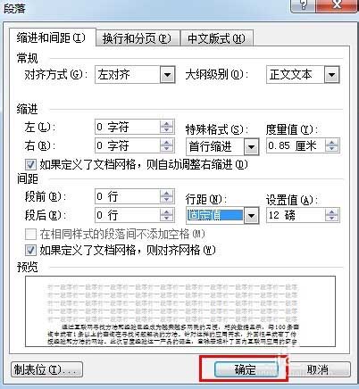 在弹出的"段落"对话框中,对行距进行选择,例:固定值、12磅
