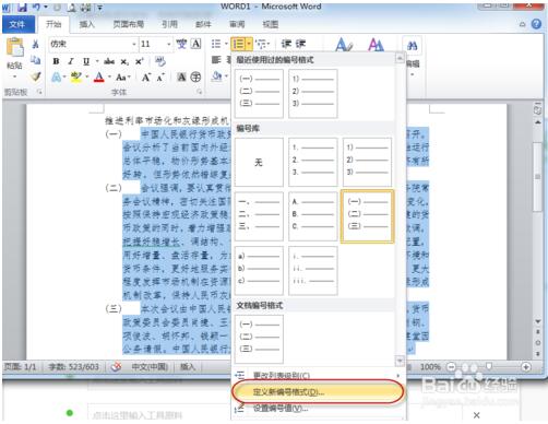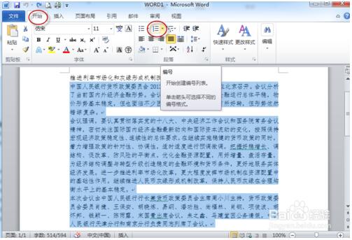 2.选定要编号的内容,如图