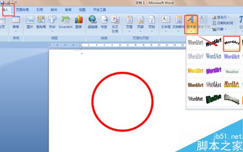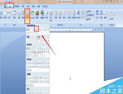 1、打开word 2007,【插入】菜单-【形状】插入【椭圆】形状。如下图所示: