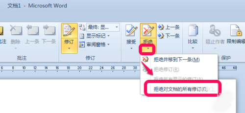 5、另外,如果,你需要确定这些修改了,我们就需要对这些修改进行接收或是拒绝,这样完成后也同样可以消除这些标记。