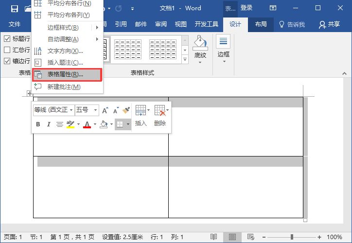 (2)拖动表格调整其大小后,选中整个表格,右键选择“表格属性”命令。