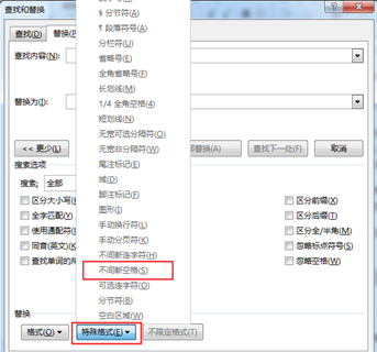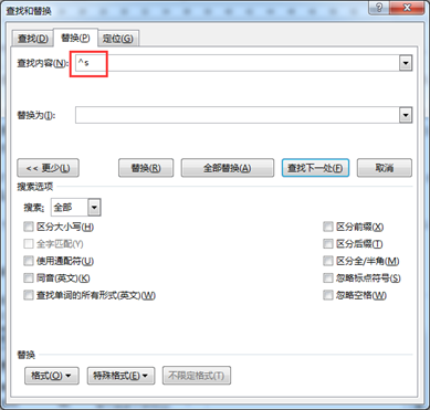 方法二:也可以直接在【查找内容】文本框中按【Ctrl+Shift+Space】组合键,输入“不间断空格”。方法三:在【替换】对话框的【特殊格式】中选择【不间断空格】选项,就会在【查找内容】文本框中自动输入“^s”(当然这里也可以手动输入^和小写字母s),最后,点击【全部替换】按钮即可!