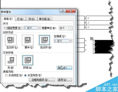 9、双击表格图标,在"表格属性"中点击"定位"按钮。