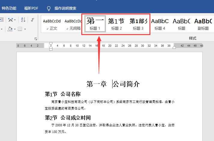 Step01 依次对文档中各级标题应用【样式库】中的标题样式(注:标题样式根据实际需求进行设置),比如一级标题,就应用【标题1】,二级标题,就应用【标题2】,其他以此类推。