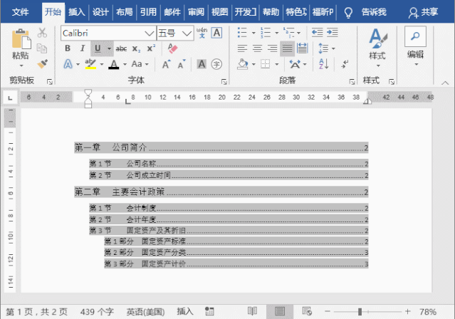 Step03 按【F9】键,将域代码变成域值,这样子目录就制作出来啦!