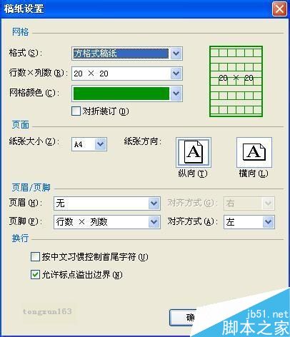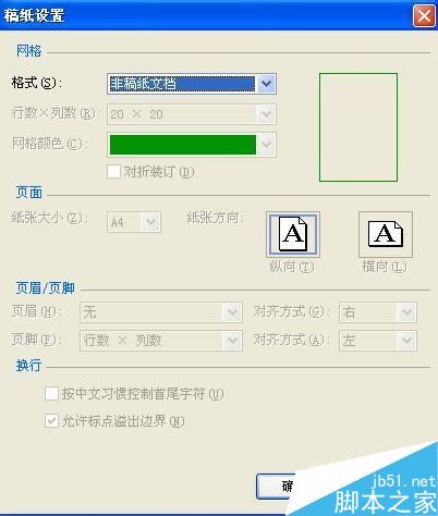 6、由于这里仅是告诉你如何增加,所以就不进行其他操作了,如果你有其他要求可以在相应的设置里进行设置,选择"方格式稿纸"项后,界面发生变化,如图: