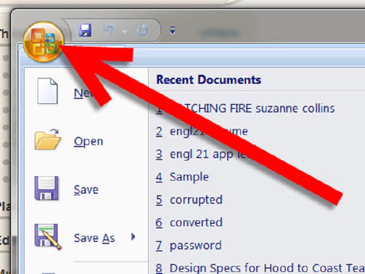 - 点击左上角的“文件”或者“Office”按钮。有些功能可能会受到限制。