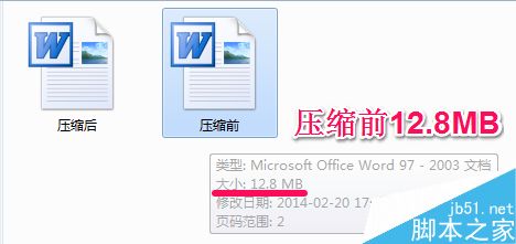 4、小编保存给大家看一下压缩前和压缩后的Word文档大小。