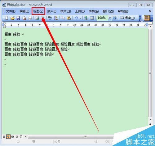 2、在WORD文档菜单栏里,我们点击"视图" 如图