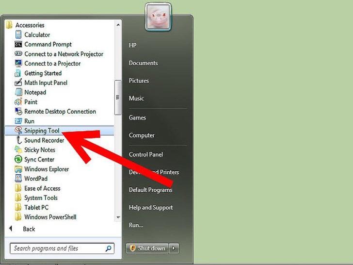 转到“开始” > “所有程序” > “附件” >“截图工具”