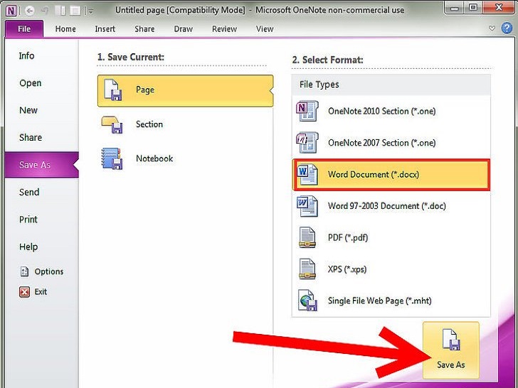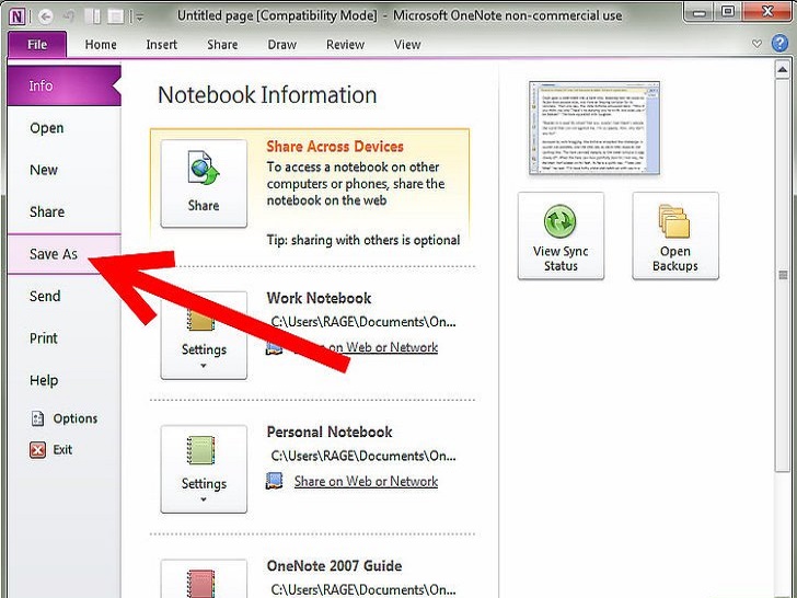该文件将OneNote中打开。确保这是唯一打开的页面,如有其他打开的页面,点击并按Delete关掉他们。再点击文件/ Office按钮 ,然后另存为。.