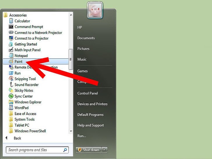 转到“开始”> “所有程序” > “附件” >“画图” 。