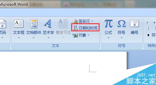 2、在插入菜单中点击"日期和时间"。
