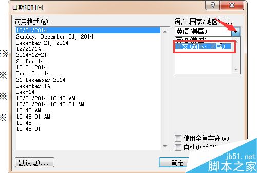 3、点击下拉小三角选择中文的日期格式。
